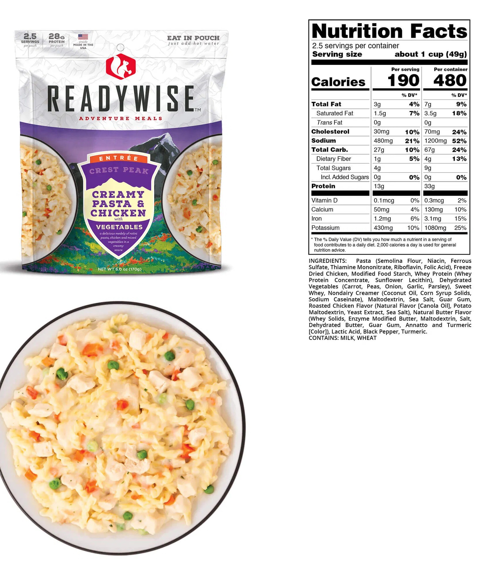 • Creamy Pasta & Chicken W/Vegetables